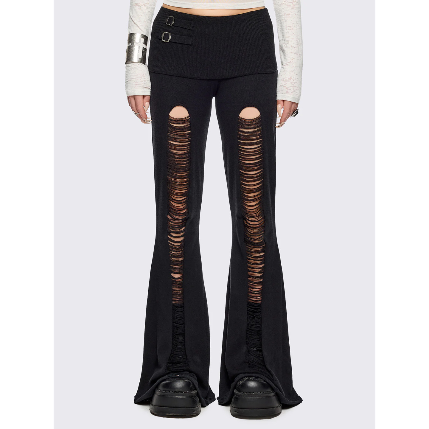 480Minga 新品暗黑哥特 规则破坏设计 金属扣 黑色喇叭裤长裤休闲裤