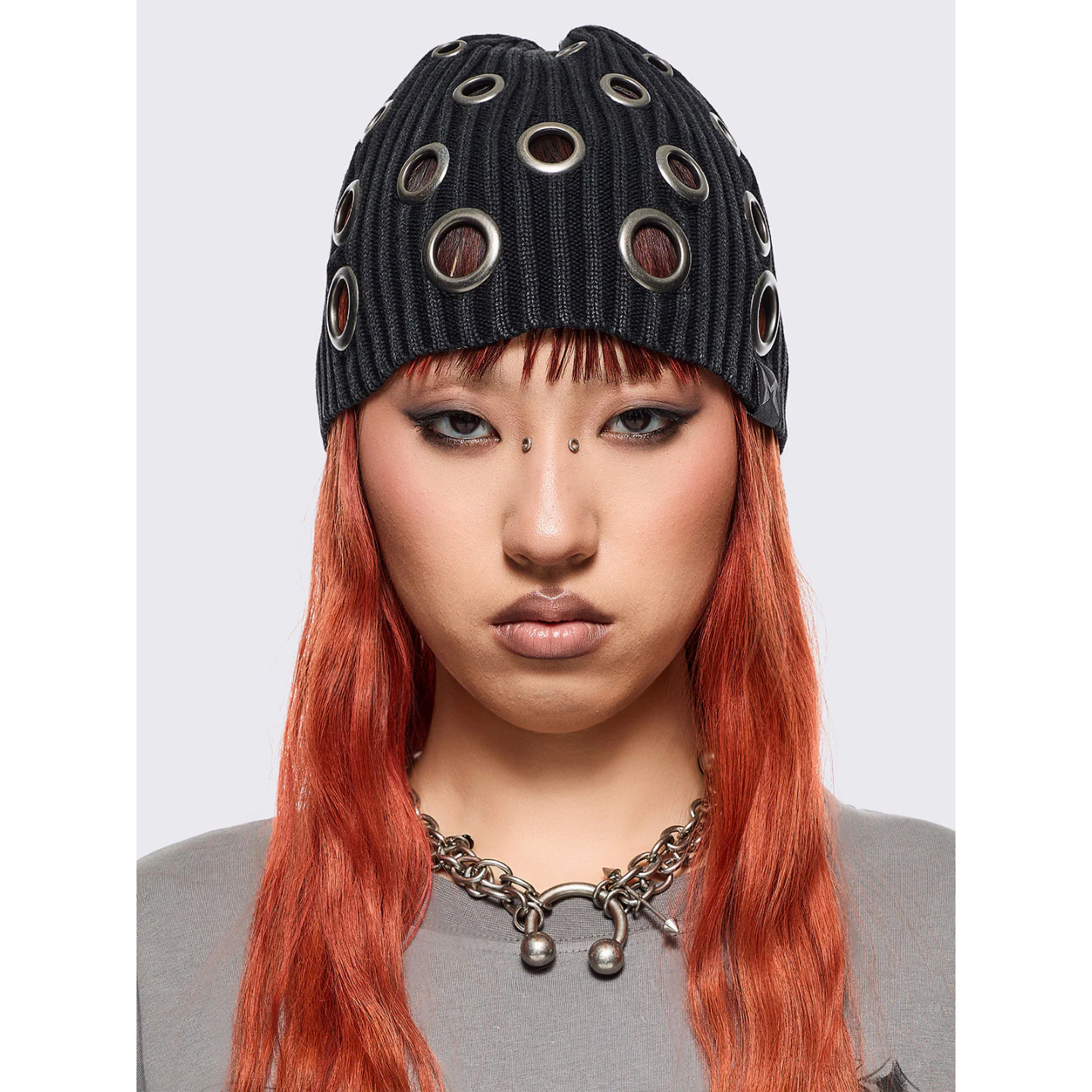 360Minga 新品 美式朋克水洗黑/灰色 厚实针织罗纹 圆顶针织帽毛线帽
