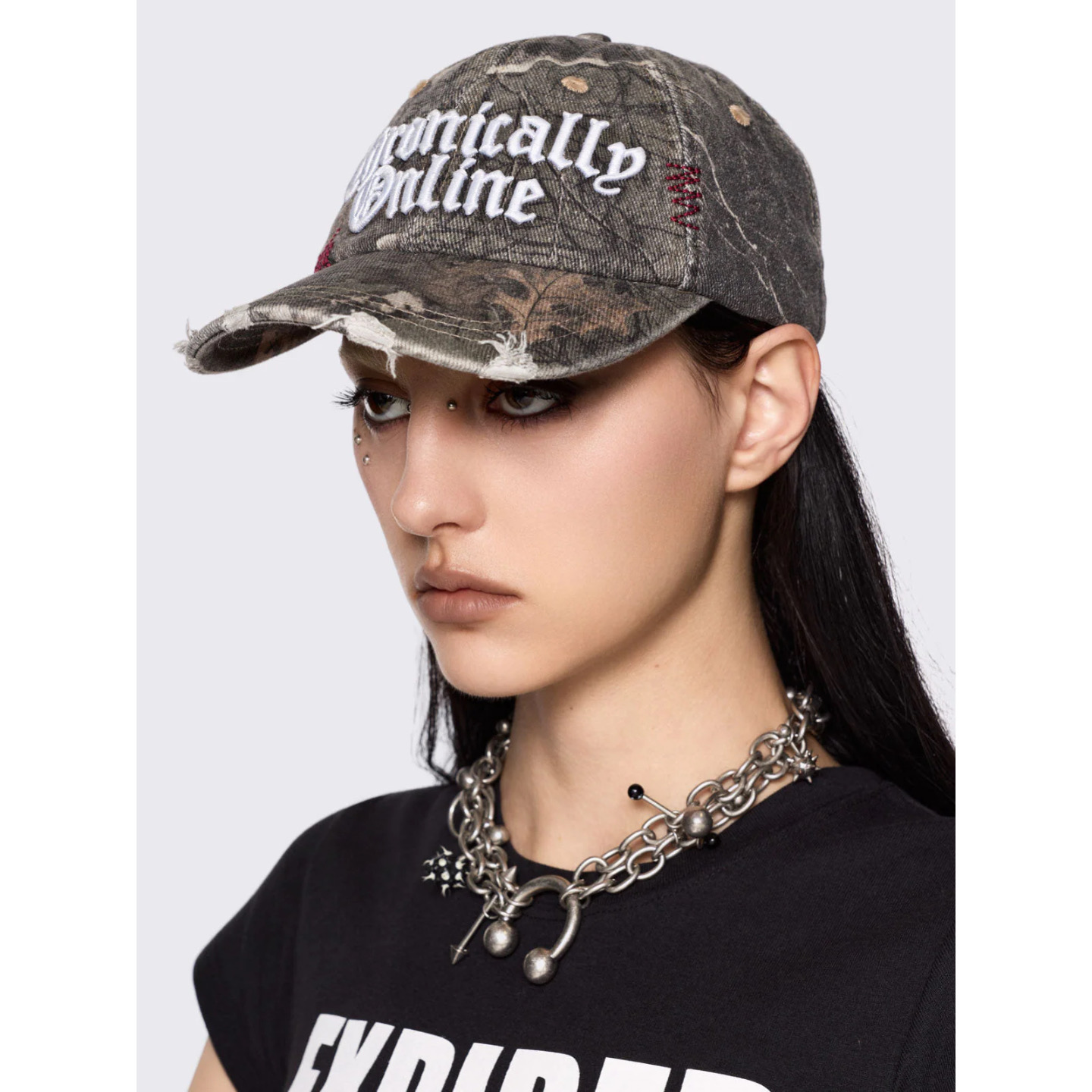 360Minga 美式朋克 做旧森林树木迷彩印花图案 刺绣字母 牛仔棒球帽