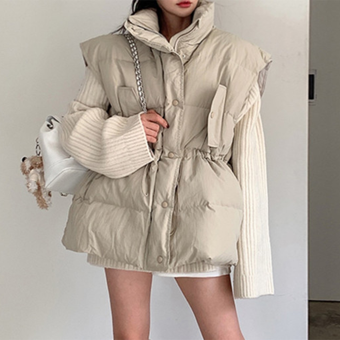 99.98简约气质抽绳百搭显瘦棉服马甲外套女2025冬季新款叠穿面包服上衣