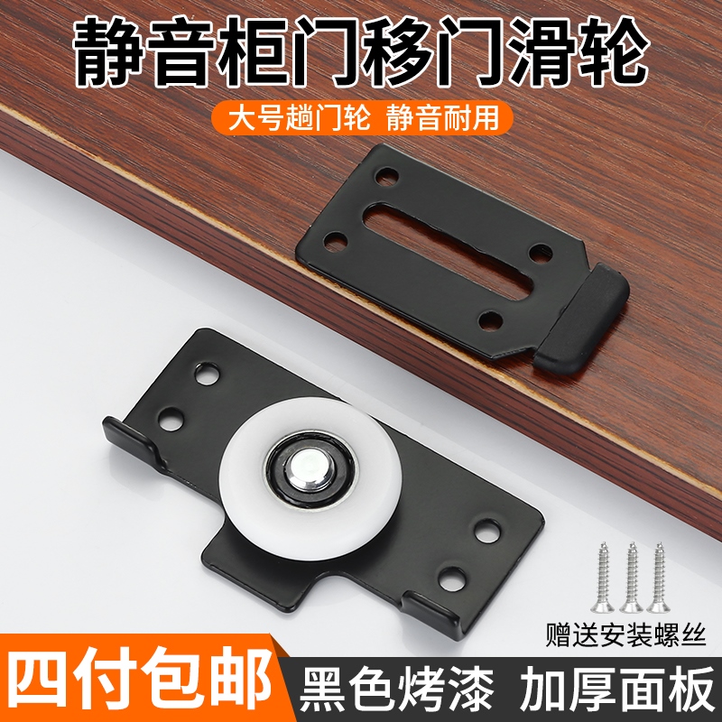 8.32老式衣柜滑轮趟门轮子移门推拉轮黑色塑料橱柜吊轮轨道门配件静音