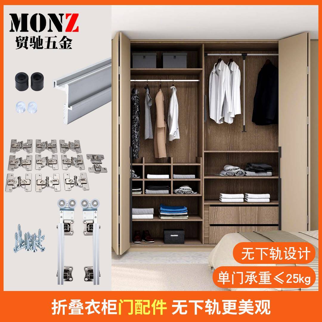 92.66折叠门无下轨吊滑轮推拉门衣帽间轨道过道门两折衣柜吊轮五金配件