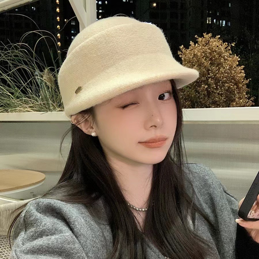 赵露思同款平顶针织鸭舌帽女秋冬百搭显脸小马术帽大头围毛线帽子