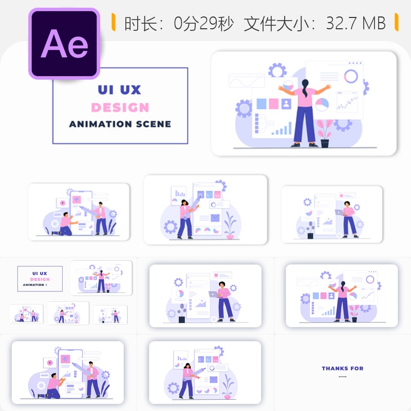 矢量UI与UX设计动画场景AE模板数字应用创意开发框架内容设计