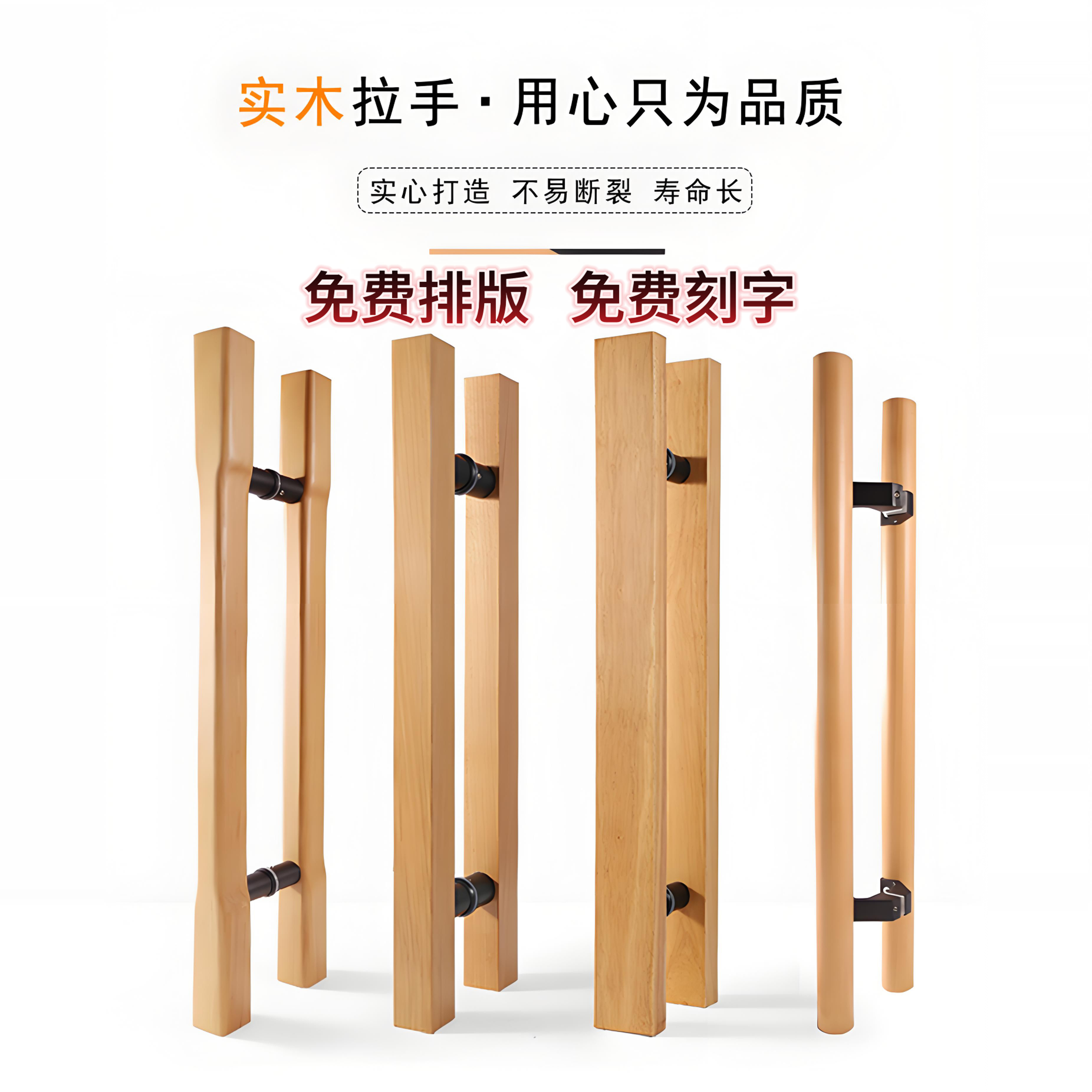 40玻璃门拉手实木雕刻门把手酒店民宿简约拉手免费雕刻logo原木扶手