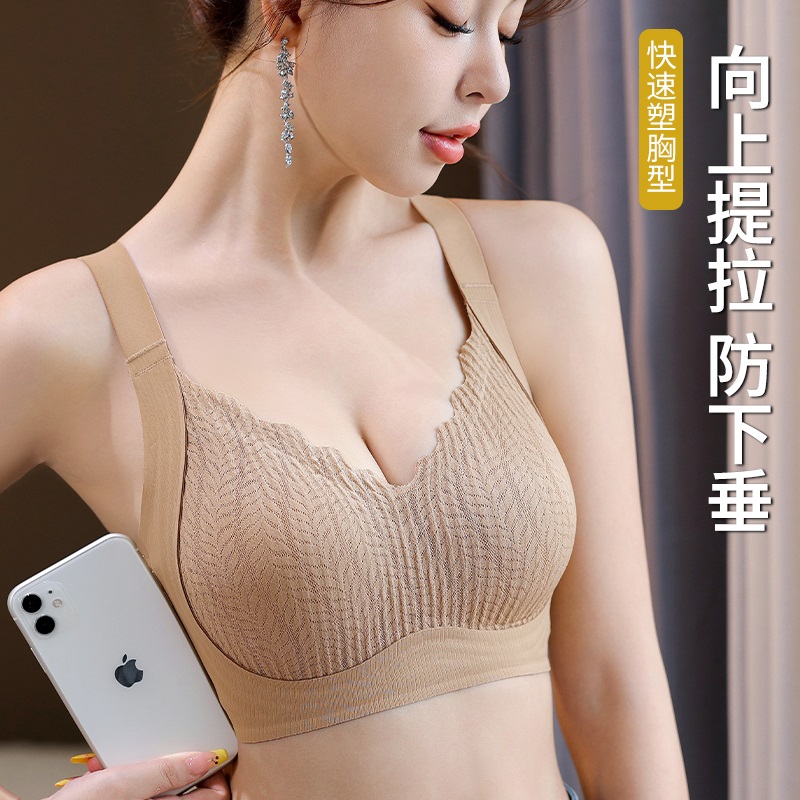 33.9轻薄提拉无痕内衣女大胸显小胸聚拢乳胶无钢圈收副乳防下垂文胸罩