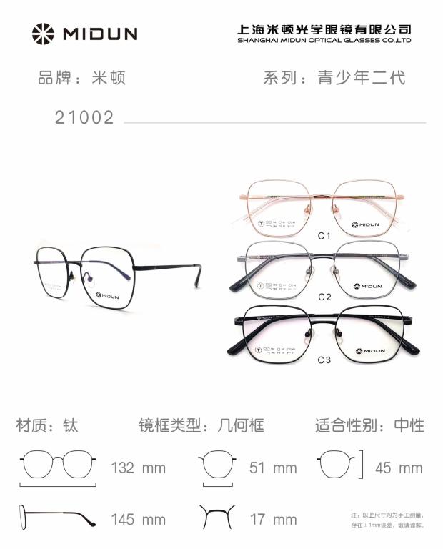 MIDUN/米顿时尚合金纯钛镜框眼镜架多边形近视镜女款全框21002