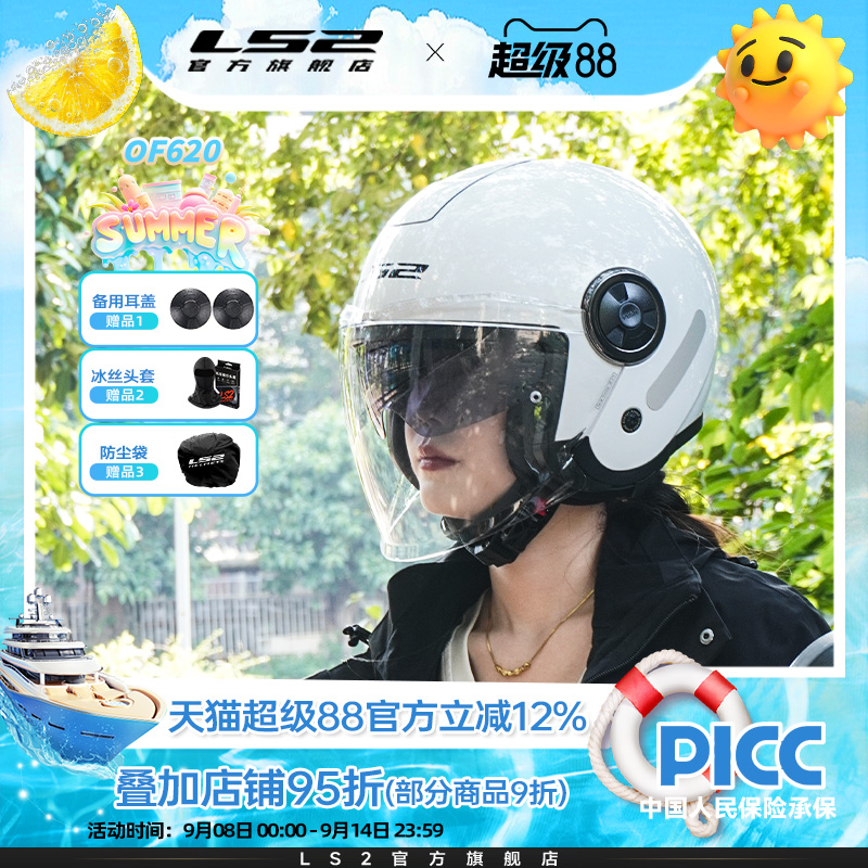 798LS2摩托车双镜片半盔男女四分之三头盔踏板车四季通用OF620