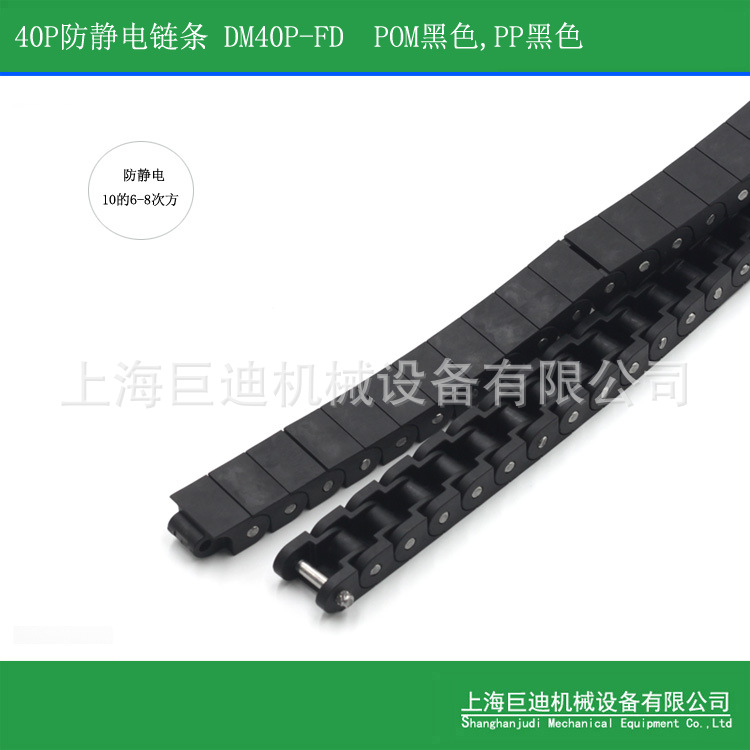 452"巨迪"RS40P防静电塑料链条 黑色POM抗静电导电级LCP传动工程链条