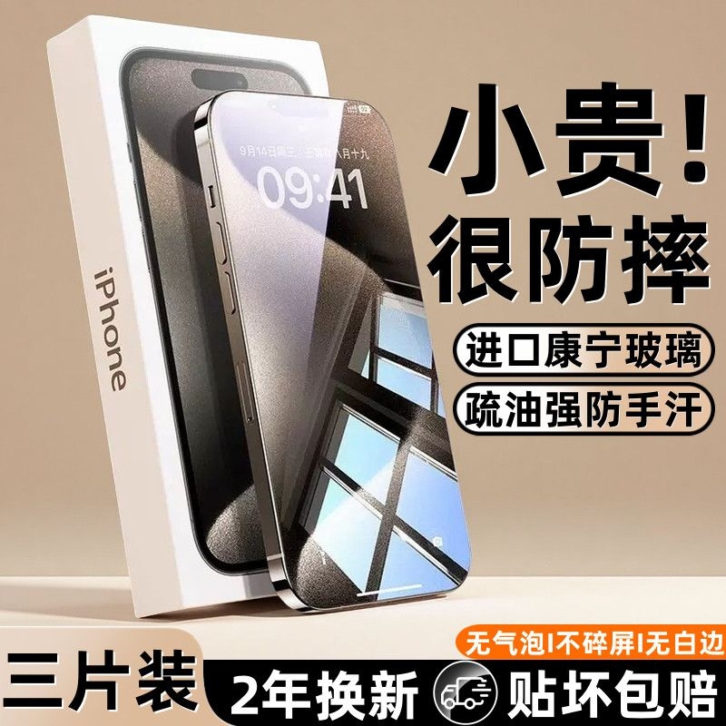 4.89适用苹果17promax9D康宁钢化膜iphone16plus防窥无尘秒贴15高清12pro防摔14全屏覆盖x手机贴膜13防指纹xr