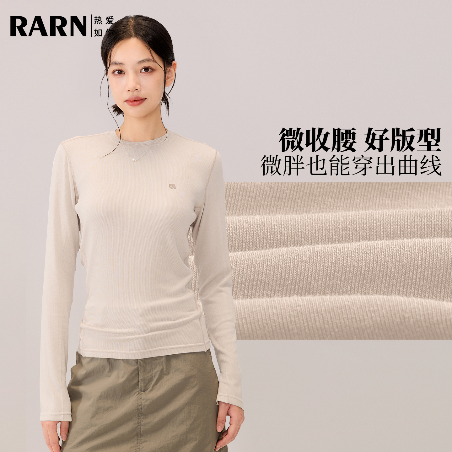 99RARN热爱如你2025秋装新款设计感线条拼接圆领长袖T恤修身打底衫