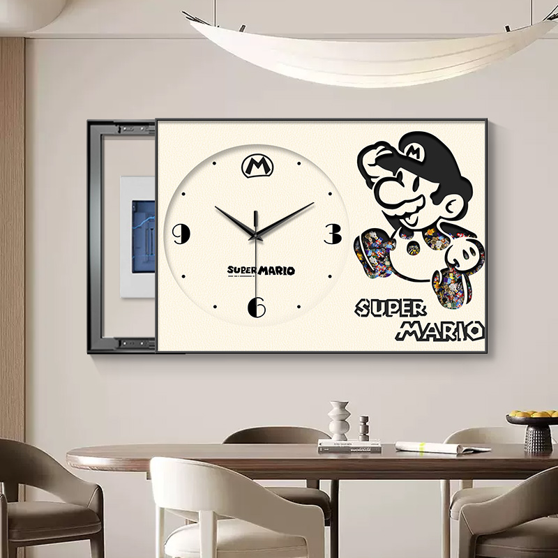 马里奥电表箱装饰画时钟超级玛丽客厅配电箱电闸盒遮挡画钟表挂钟