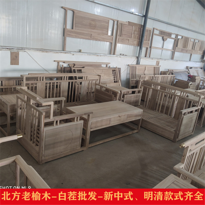 1150老榆木新中式全实木沙发组合现代简约客厅家具白茬胚冬夏两用木质