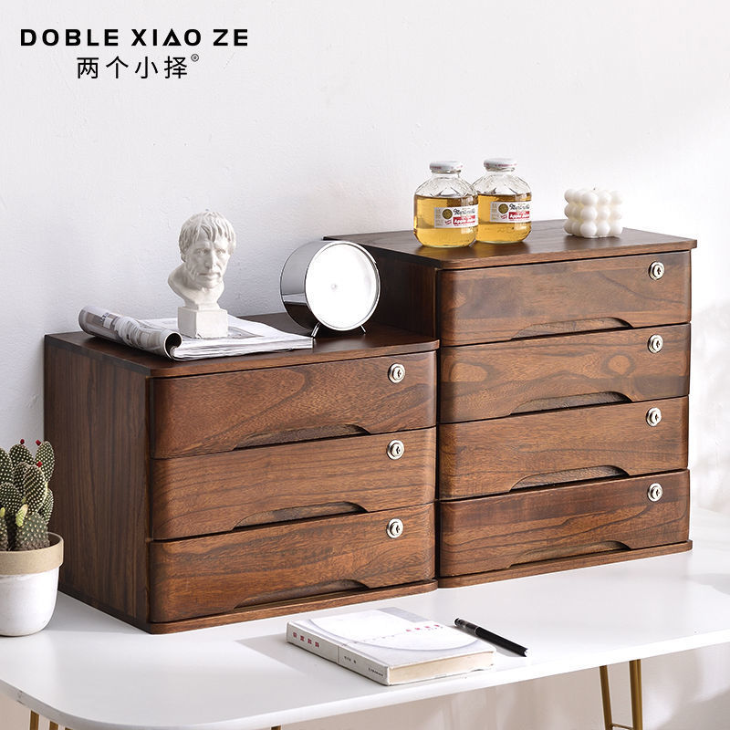 146.64全带锁桌面收纳盒抽屉式实木办公桌上整理柜多层杂物储物柜子木质