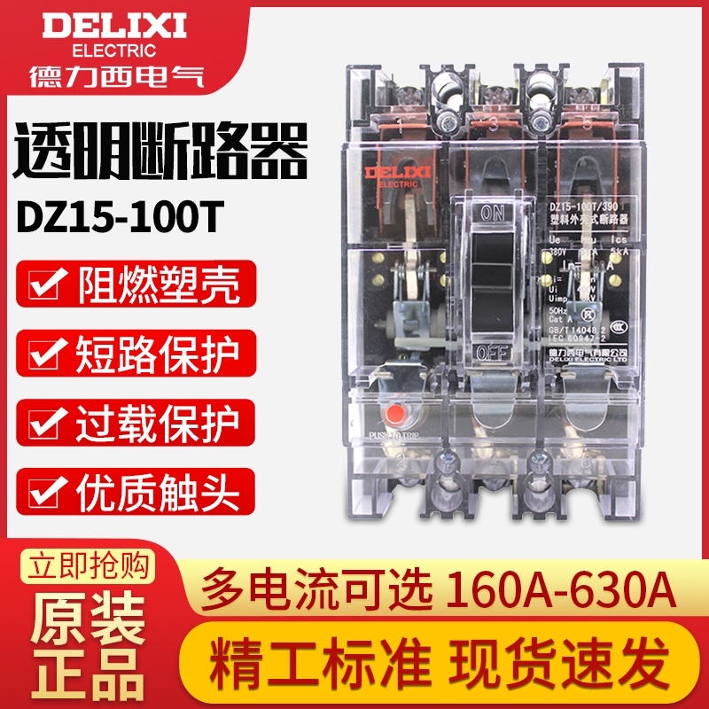 透明断路器DZ15-100T空开63A 100A 3P空气开关40A三相开关