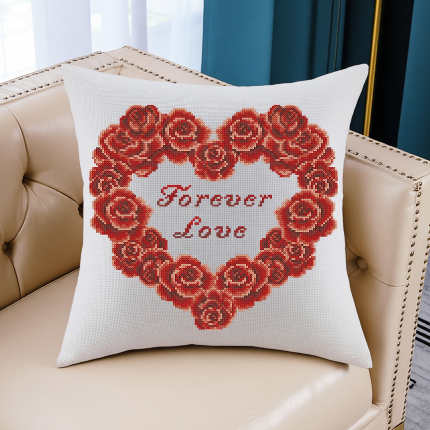 38高级感十字绣抱枕十字绣玫瑰花爱心花环客厅沙发汽车靠垫自己绣