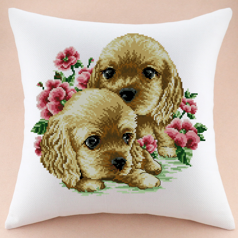 122024卡通动漫十字绣抱枕新款印花情侣两只小狗靠垫单个客厅沙发