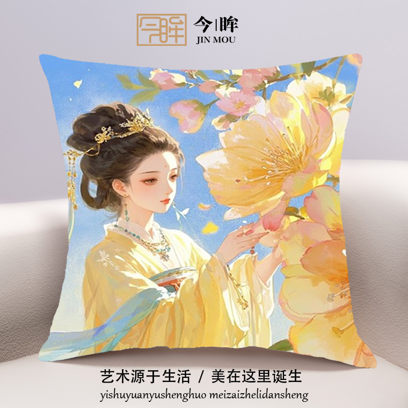 38古风花卉少女十字绣抱枕2025年新款客厅沙发卧室床头靠枕手工满绣