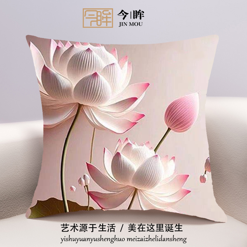 38新中式荷花十字绣抱枕2025年新款客厅沙发卧室靠枕小件手工自己绣