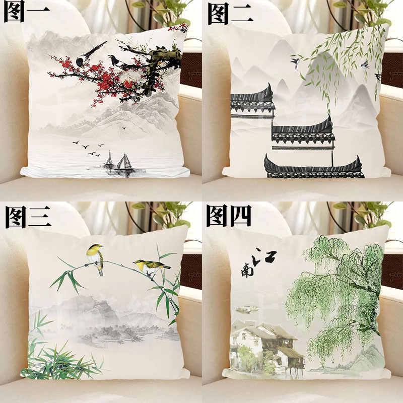 38烟雨江南水墨风景十字绣抱枕精准印花2025新款手工线绣枕套自己绣