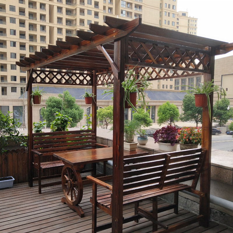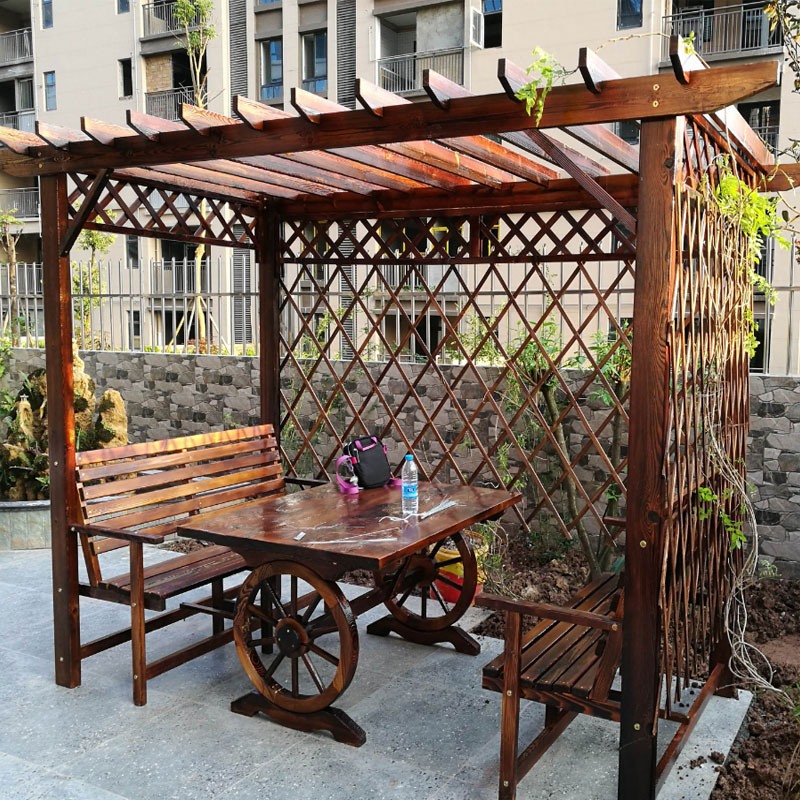 4385防腐木屋凉亭葡萄架户外庭院桌椅休闲家具花园碳化实木爬藤花架