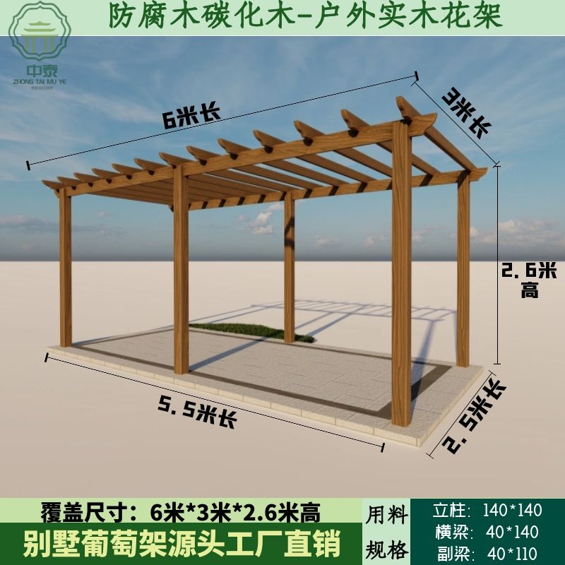 3427防腐木葡萄架别墅室外庭院花园长廊凉亭新中式碳化木爬藤花架定制