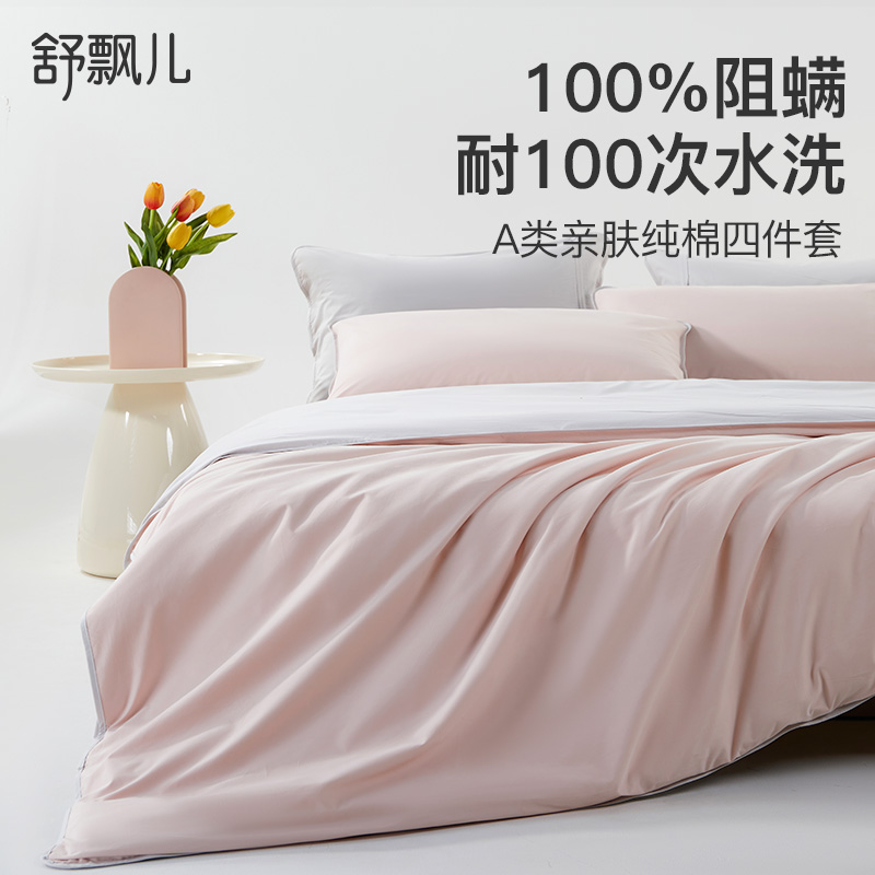 78【自营】舒飘儿100%防螨纯棉被套单件床单床笠学生儿童家用枕套