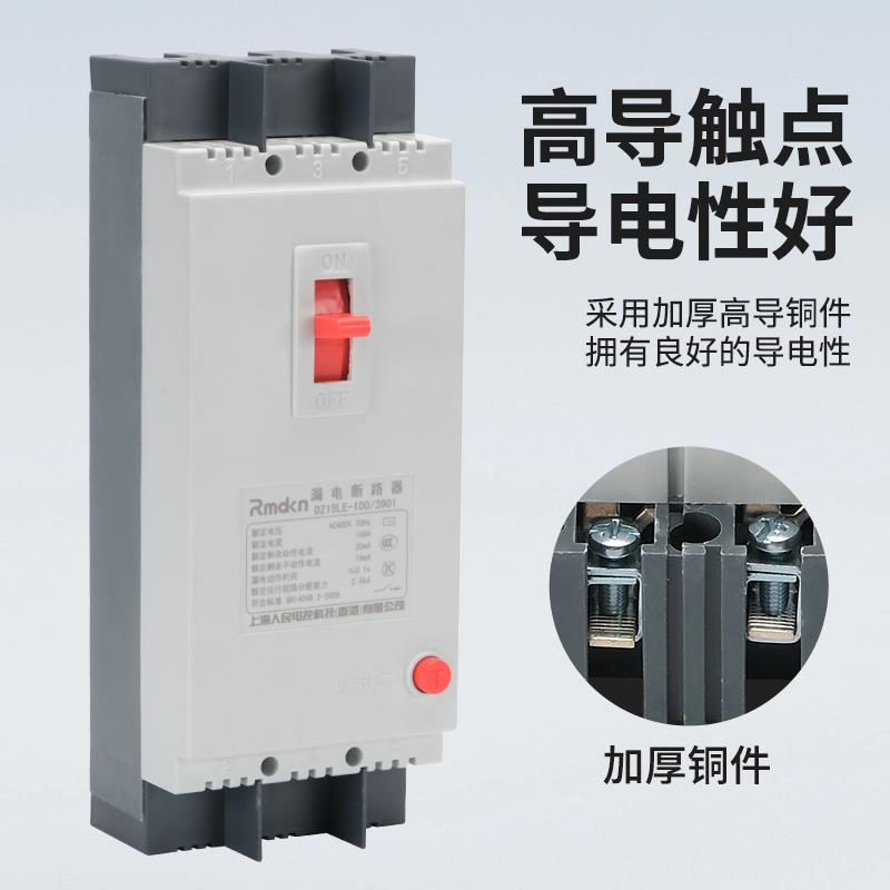 29.7人民电气漏电保护器DZ15LE-100/4901 40A63A100A三相四线塑壳开关