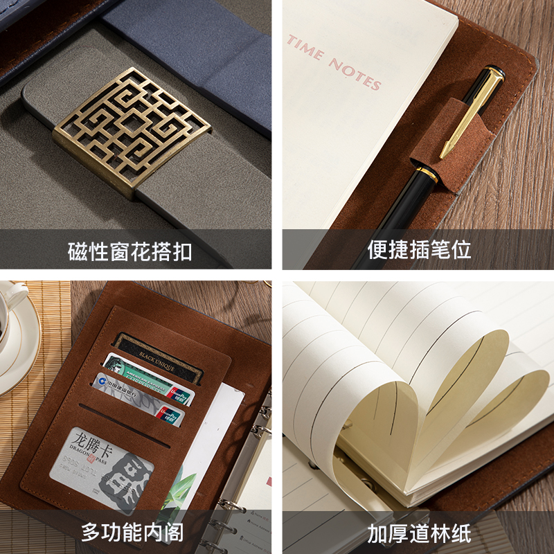 16鑫都18k123磁扣商务皮面本黑红棕三色笔记本子简约加厚皮面带扣工作会议可定制logoA5/B5