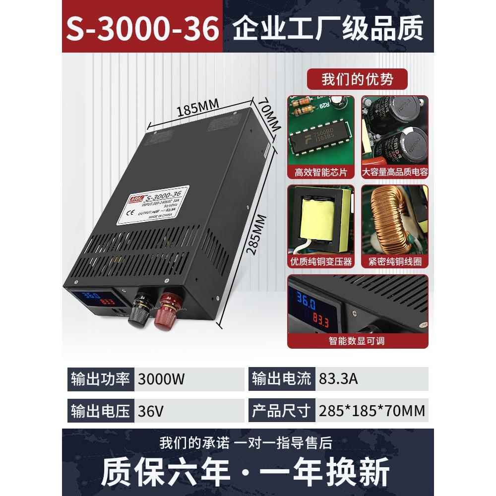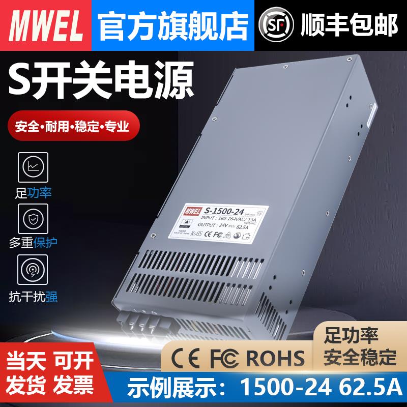 明纬1000W大功率开关电源S-1200W1500/2000-24V12V36WV48V可调恒