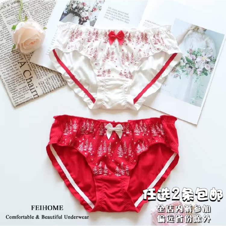 29.8N540女士低腰纯棉圣诞新年女生内裤红色白色可做节日礼物M/L/XL