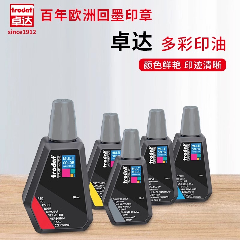 17.8卓达7011水性回墨印油欧洲进口多彩系列彩色印油套色渐变色印章印油印泥7012印油环保印油墨红黑蓝荧光粉