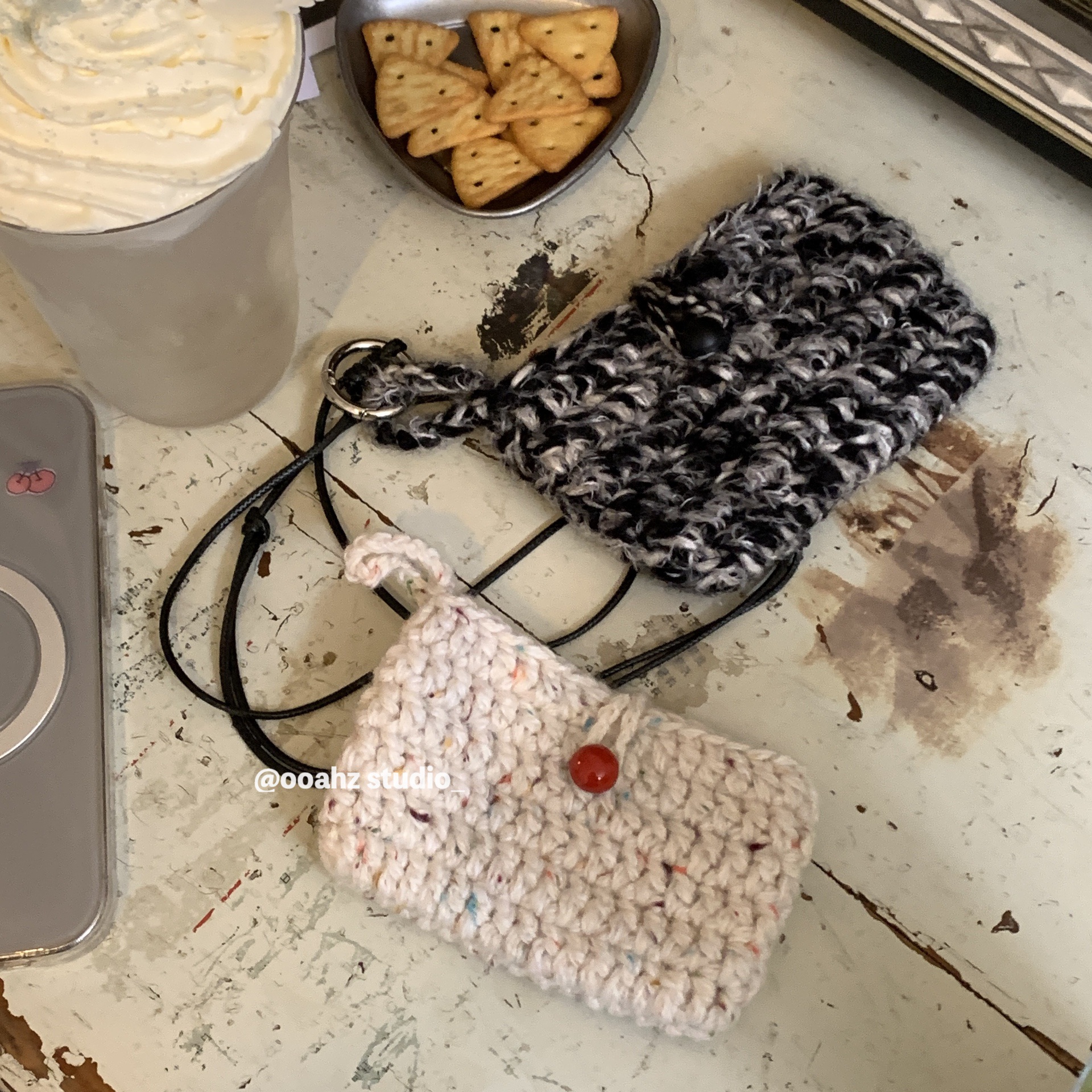 25.79"黑米甜粥"自制手工编织毛线卡包零钱包 秋冬撞色百搭挂脖毛衣链