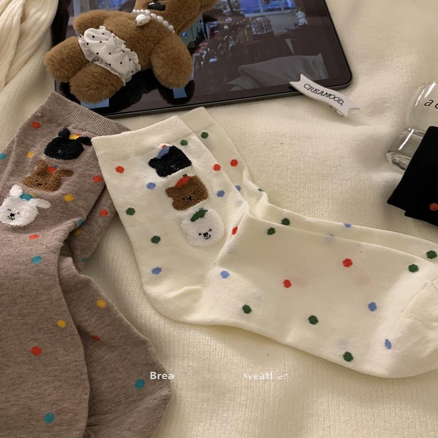 6.9"可爱要藏不住啦"彩色波点袜子女中筒袜夏季日系可爱卡通小熊春秋