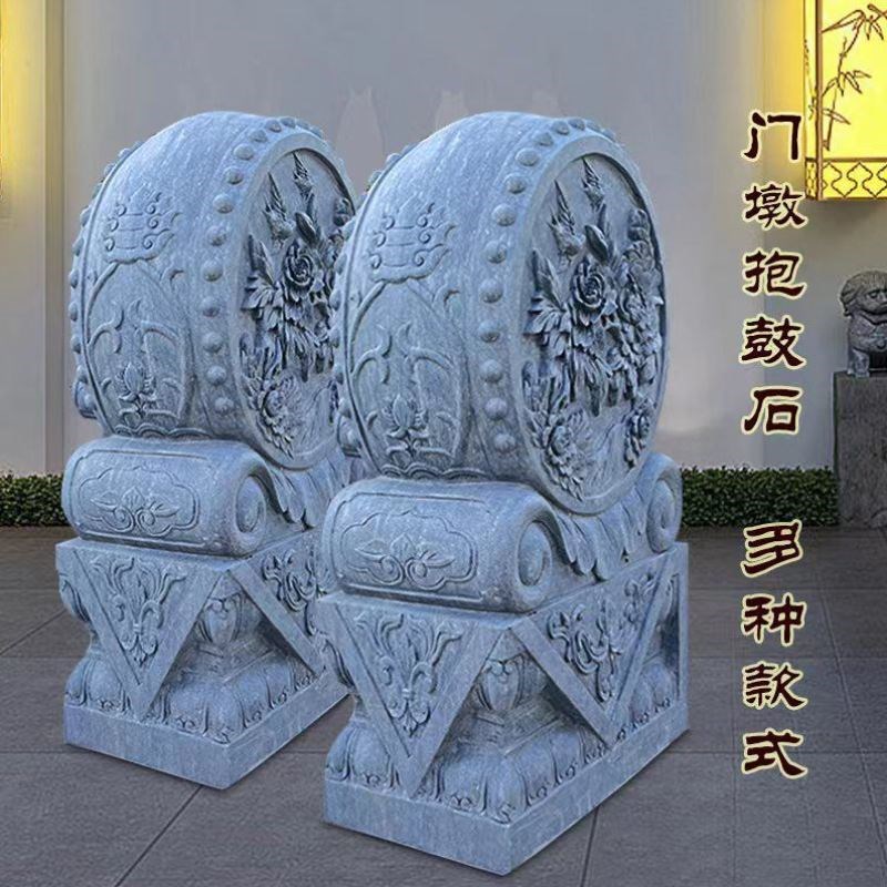 575石雕门墩抱鼓石家用别墅门口仿古石鼓一对天然青石门当户对石摆件