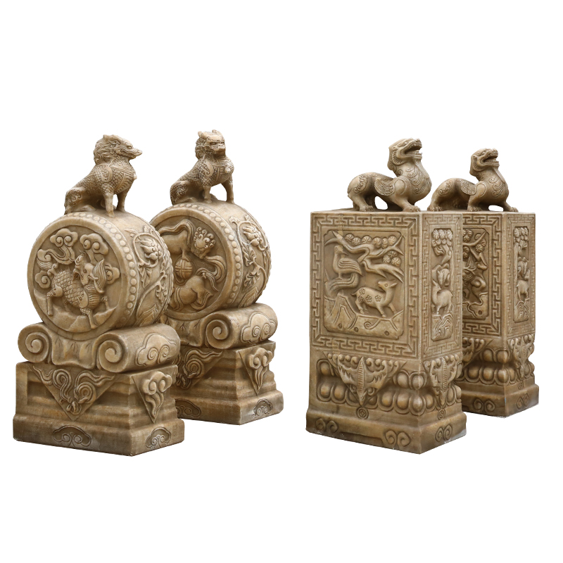 3880.8石雕门墩一对貔貅麒麟别墅门口会所庭院门当户对中式做旧抱鼓石鼓