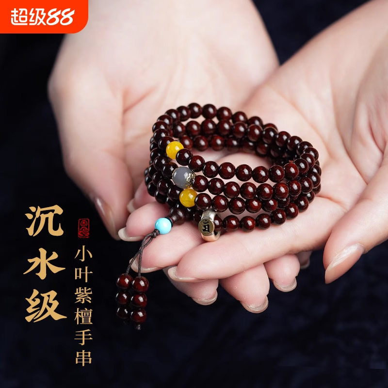 14.88老料沉水级小叶紫檀108颗手串檀木香佛珠非洲手链男女念珠编织