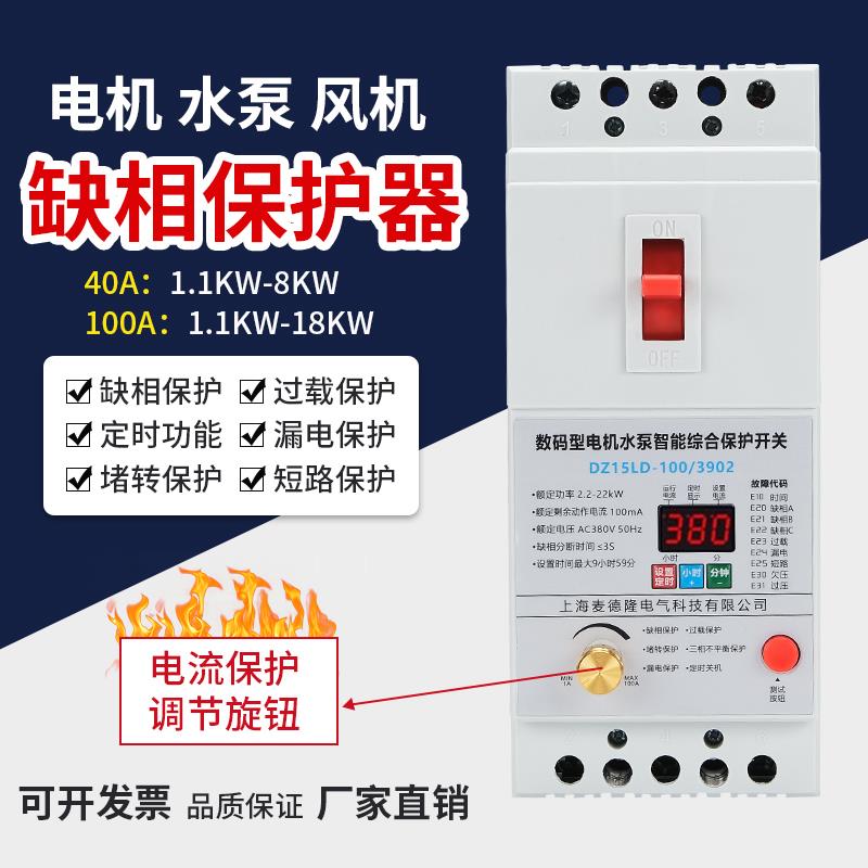 86.57柏立电机水泵缺相断相保护器40A63A智能水泵漏电保护器三相电开关