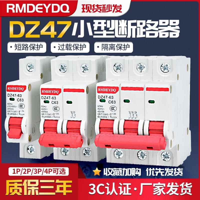 69漏电保护器4P DZ47三相四线漏电空气开关 过载短路漏保 25A40A63A