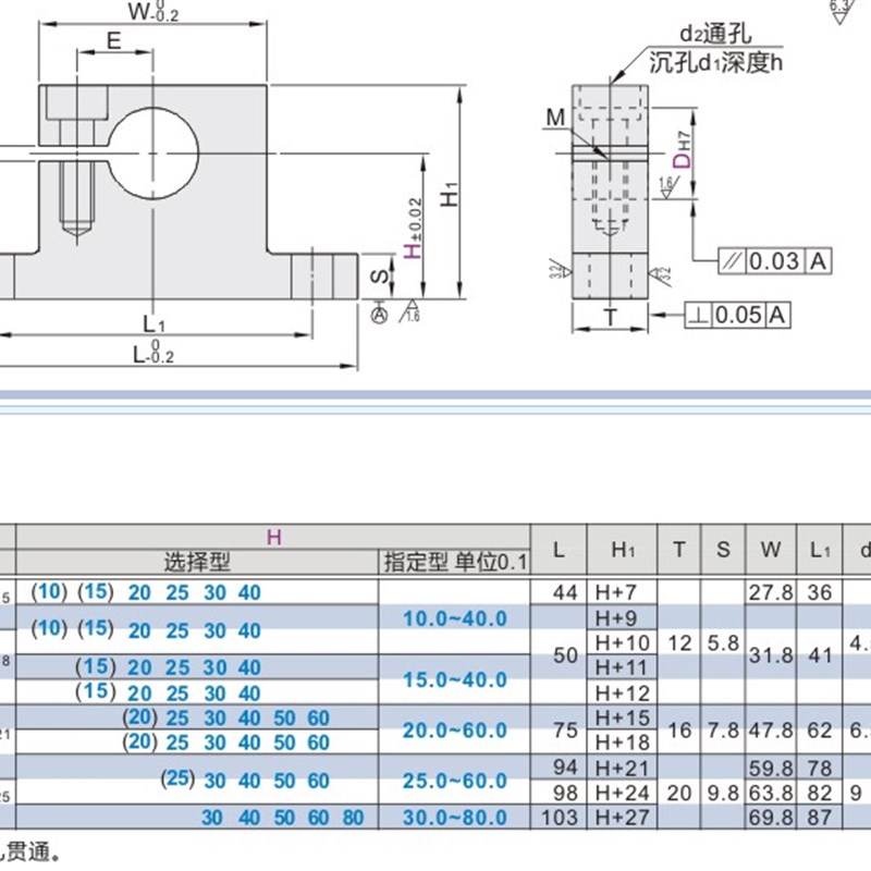 T形导向轴支座GCP01-D10-H15 GCP02-D12-H20 GCP06-D13-H25 GCP08