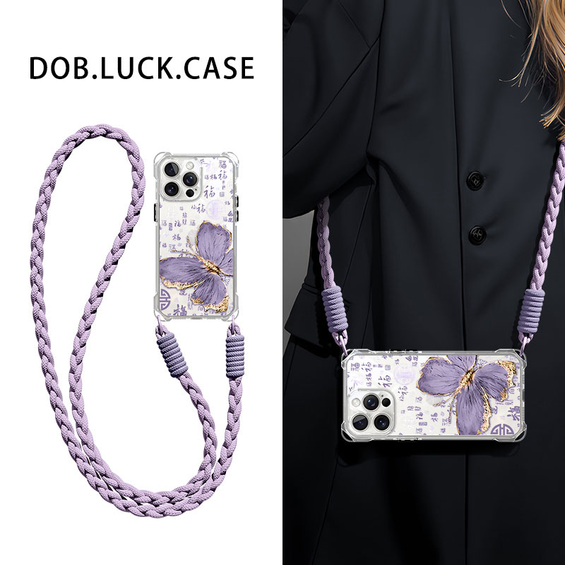 12.8ins斜挎可背挂绳适用苹果16promax手机壳iPhone15pro紫底油画花朵盘子14夏天13/12唯美XR高级感78plus女防摔