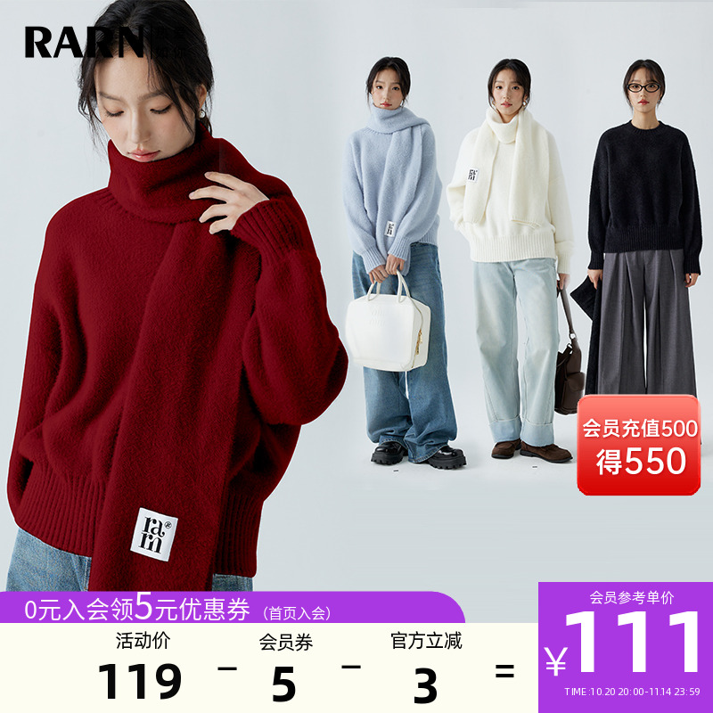 119RA&RN秋冬新年款仿貂毛围巾毛衣套装