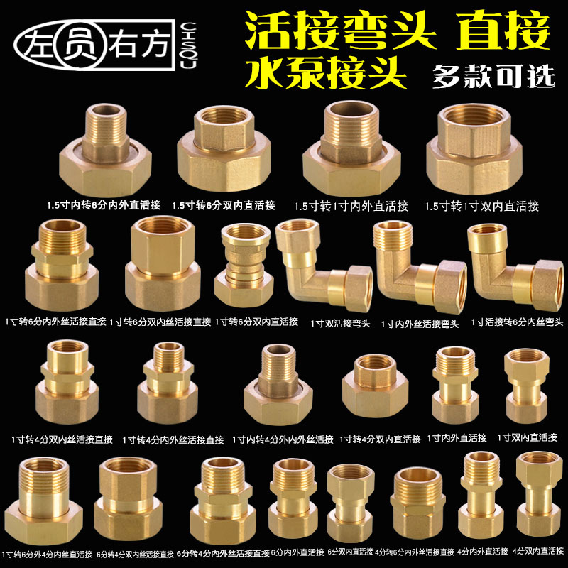 1.084分全铜直接对丝接头6分1寸变径内外双内双外丝弯头三通补芯配件