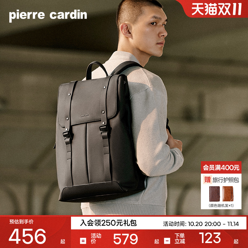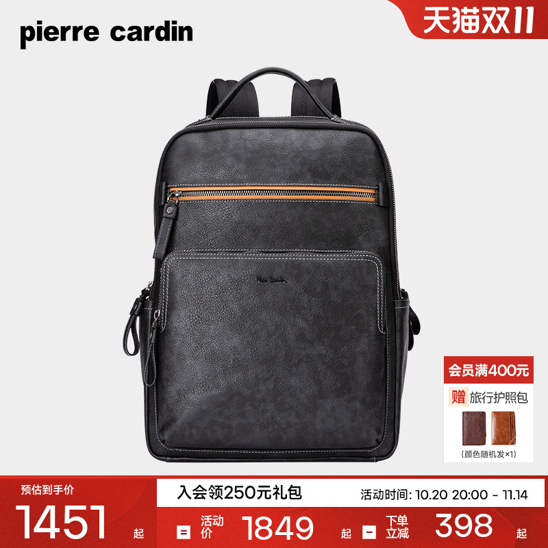 1849【真皮】皮尔卡丹男包大容量双肩包男士商务电脑背包出差旅行背包