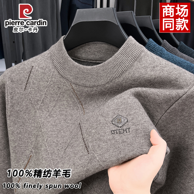 138皮尔卡丹100%精纺羊毛衫冬季男士圆领保暖加厚毛衣宽松大码爸爸装