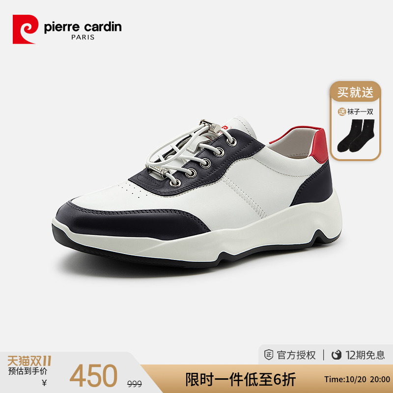 999皮尔卡丹男鞋2022秋季系带透气缓震运动鞋真皮休闲鞋轻底拼色厚底