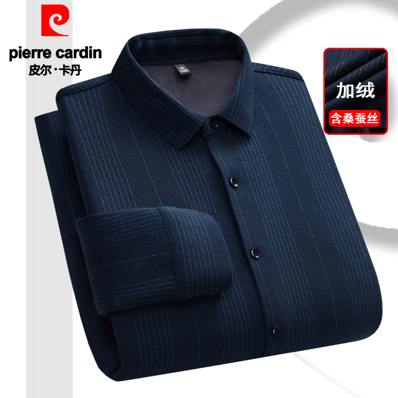 138皮尔卡丹男士冬季保暖衬衫长袖加绒加厚商务休闲中老年爸爸装衬衣