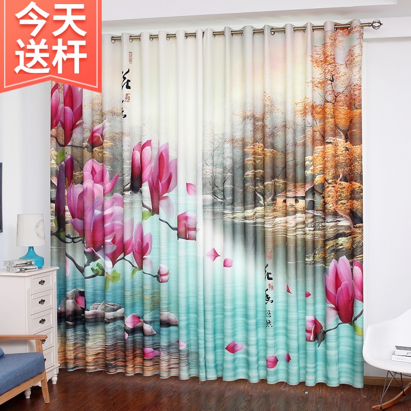 162.5窗帘成品落地窗中国风中式山水客厅大气阳台餐厅卧室2019新款遮光