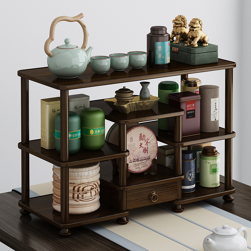 162.5茶架子置物架新中式博古架茶室非实木茶具茶叶放置架茶桌边柜侧柜
