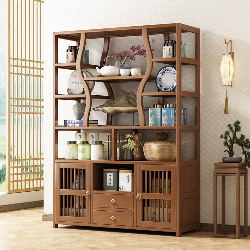 3980纯实木博古架展示柜子新中式餐边柜置物架中古法日式厨房斗柜藤编